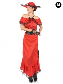 Cette tenue de Scarlett comprend la robe longue rouge sur laquelle de la dentelle noire est cousue à différents endroits, le chapeau asoorti ainsi que la ceinture noire à nouer autour de votre taille.