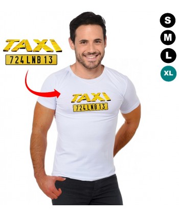 - le tee shirt blanc imprimé au logo et au vrai numéro de la plaque du taxi du film.