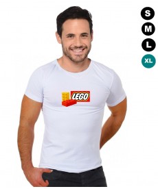 Tee shirt en coton de couleur blanche imprimé de briques de lego avec le logo.